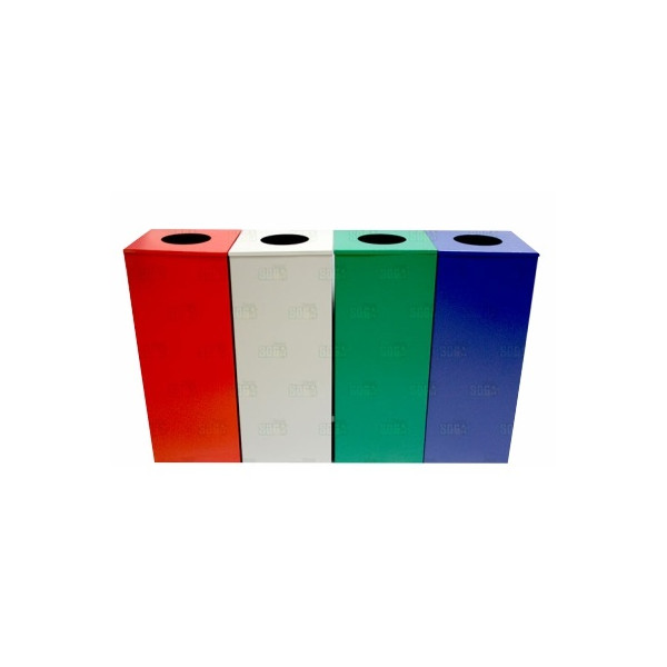 Canecas circular en acero cold rolled, calibre 18, tapa redonda recubierto con pintura electrostática, etiqueta adhesiva de señalización para intemperie