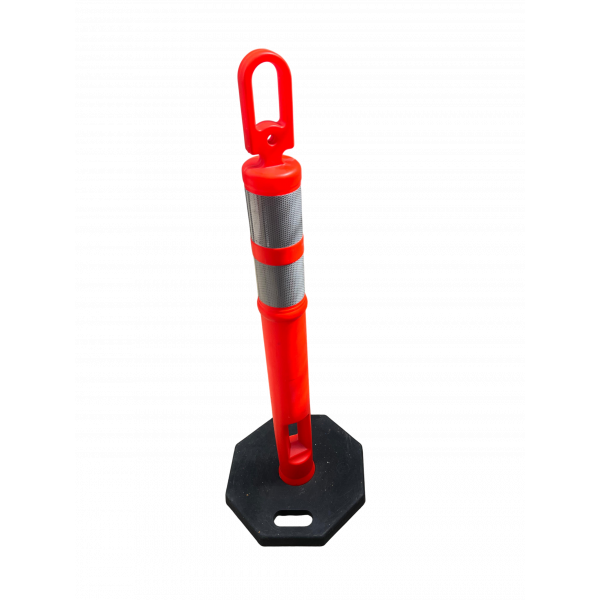 Diseñado para ofrecer máxima visibilidad y resistencia, este poste es ideal para delimitar y señalizar zonas de tránsito. Su color naranja brillante y reflejantes de alta intensidad garantizan una excelente visualización, incluso en condiciones de poca luz.